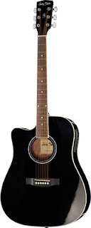 J'ai trouvé mon bonheur chez Thomann avec cette Harley Benton électro-acoustique pan coupé pour gaucher , noire et blanche ,simple et accessible.