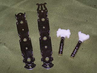 Zoom sur le sympathique chevalet inversé et réglable en hauteur :il manque une cheville et le sillet,mais je dois avoir ça quelque part dans ma caverne d'Ali Baba...