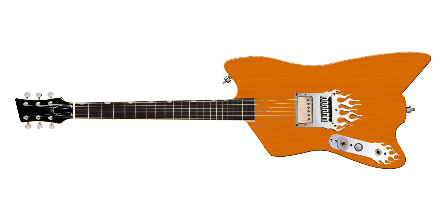 Tête asymétrique 3X3,manche vissé,corps avec bois apparent naturel,un seul micro splittable,un volume,plaques avec flaming,et  léger relicage au programme...
